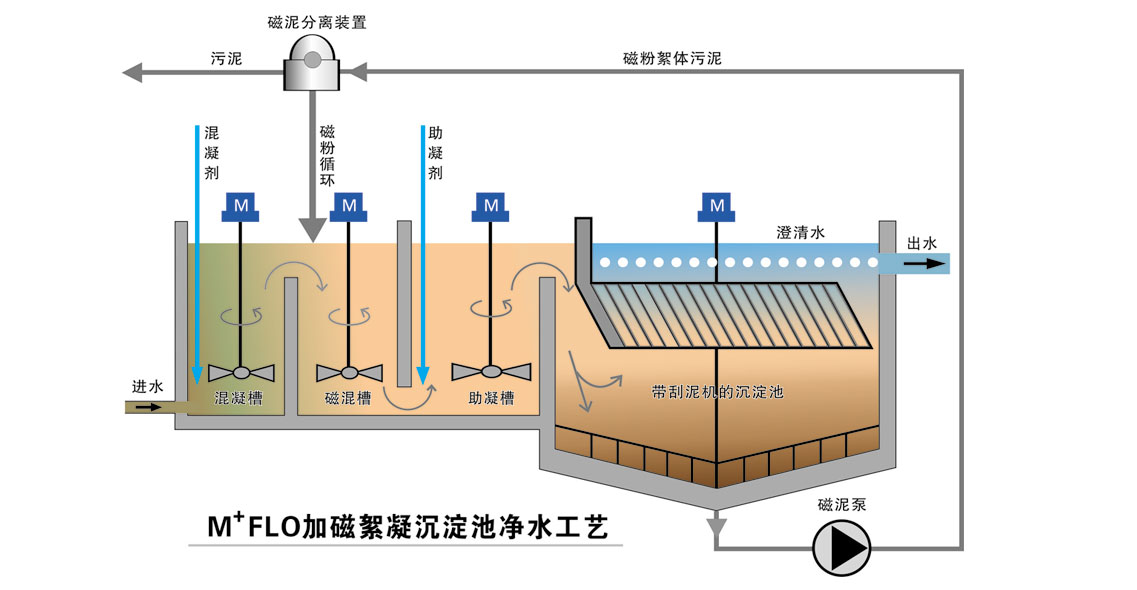 ·M+FLO磁絮凝沉淀池凈水系統 ·TT+R高效反應器+M+FLO磁絮凝沉淀池凈水系統 ·ECR電化學反應器+M+FLO磁絮凝沉淀池凈水系統